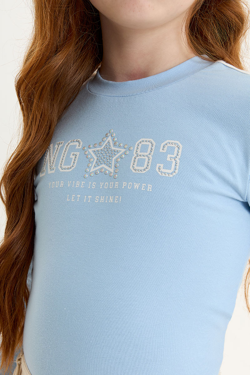 A blusinha infantil Nina Go combina estilo e conforto para meninas de 6 a 10 anos. Confeccionada em malha de algodão, a peça possui estampa com brilho delicado e listras nas mangas, criando um visual moderno e divertido, perfeito para festas, aniversários ou como roupa de sair.