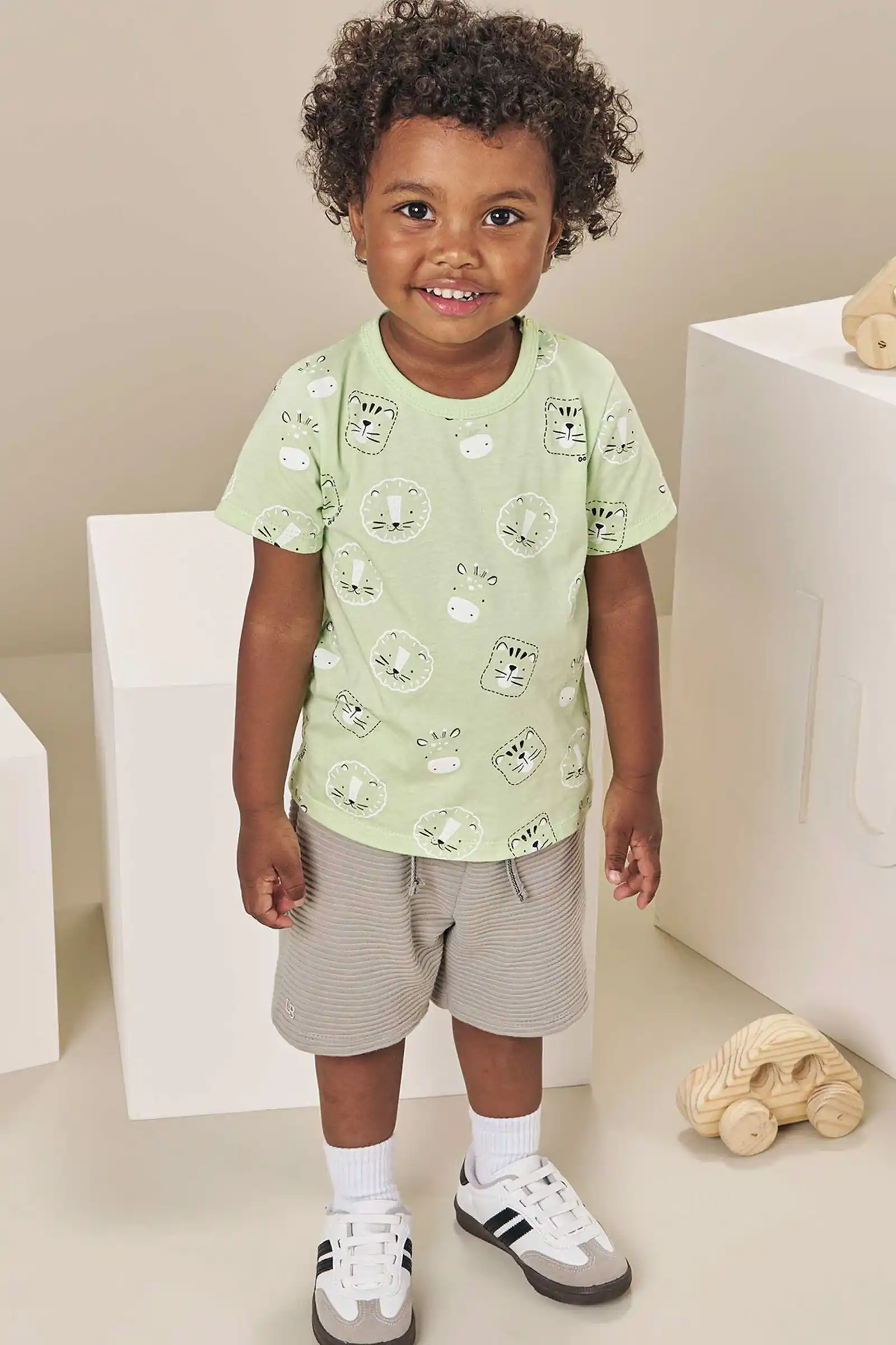 O Conjunto Luc.boo é perfeito para meninos cheios de energia e curiosidade. A camiseta 100% algodão traz uma estampa divertida de bichinhos, adicionando leveza e personalidade ao look. A bermuda em moletom, também em algodão, garante um toque macio e liberdade total de movimento, ideal para brincar, explorar e aproveitar cada momento. Um conjunto leve, confortável e ideal como roupa de sair nos dias mais descontraídos.