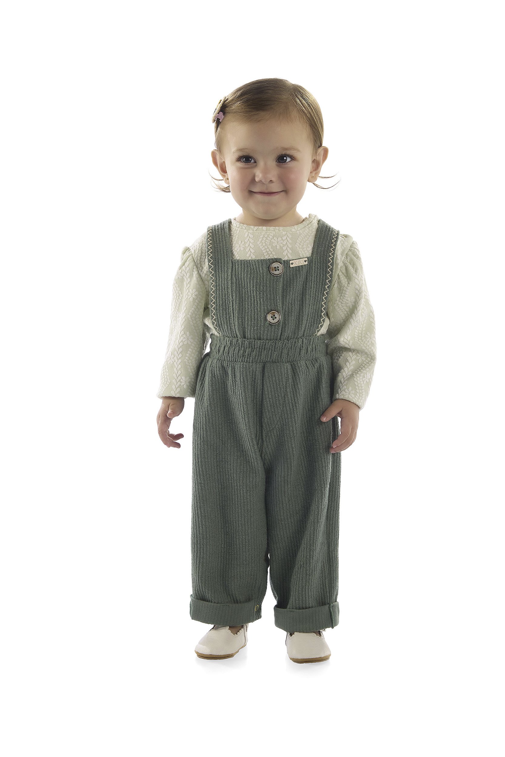 O Conjunto Jardineira Kiki é a escolha perfeita para vestir seu bebê com charme e conforto desde os primeiros meses. A jardineira em malha canelada 100% algodão traz toque macio e botões dourados que adicionam um acabamento delicado. A blusa manga longa possui estampa com textura e botões na gola, facilitando na hora de vestir — mais praticidade para a rotina da mamãe.