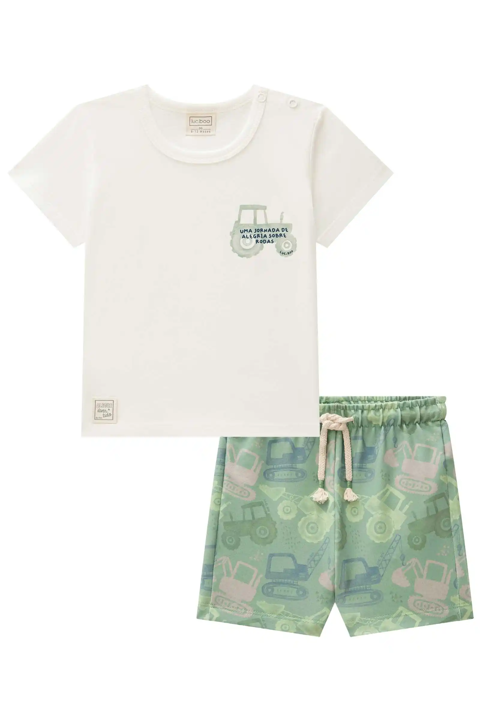 O Conjunto Luc.boo foi criado para trazer alegria e conforto ao dia a dia dos meninos. A camiseta de manga curta é confeccionada em malha 100% algodão e conta com uma estampa divertida de trator, que encanta os pequenos aventureiros. A bermuda estampada, feita em tecido leve de poliéster com elastano, possui ajuste na cintura para um encaixe perfeito e liberdade de movimento durante as brincadeiras.