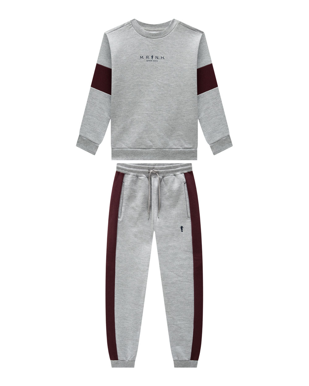 A calça em moletom 100% algodão acompanha o design da blusa com listra lateral e logo bordado, além de bolsos funcionais que garantem praticidade na rotina. Um conjunto infantil masculino ideal como roupa de sair, perfeito para passeios, encontros em família ou até como conjunto para festas mais descontraídas. Também se destaca entre as roupas para festa em estações mais frescas.
