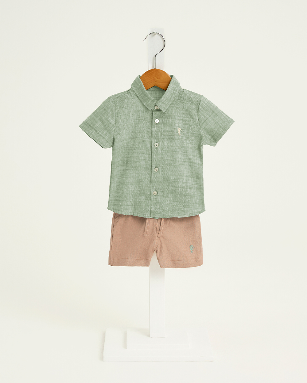 O Conjunto Onda Marinha foi desenvolvido para vestir meninos de 1 a 3 anos com estilo e conforto. A camisa em algodão com detalhe de logo bordado transmite sofisticação, enquanto a bermuda lisa em linho, com ajuste na cintura, garante praticidade e caimento perfeito. Um conjunto versátil para ocasiões especiais, ideal como roupa de sair ou até mesmo como opção de conjunto para festas, unindo leveza, qualidade e design atemporal.
