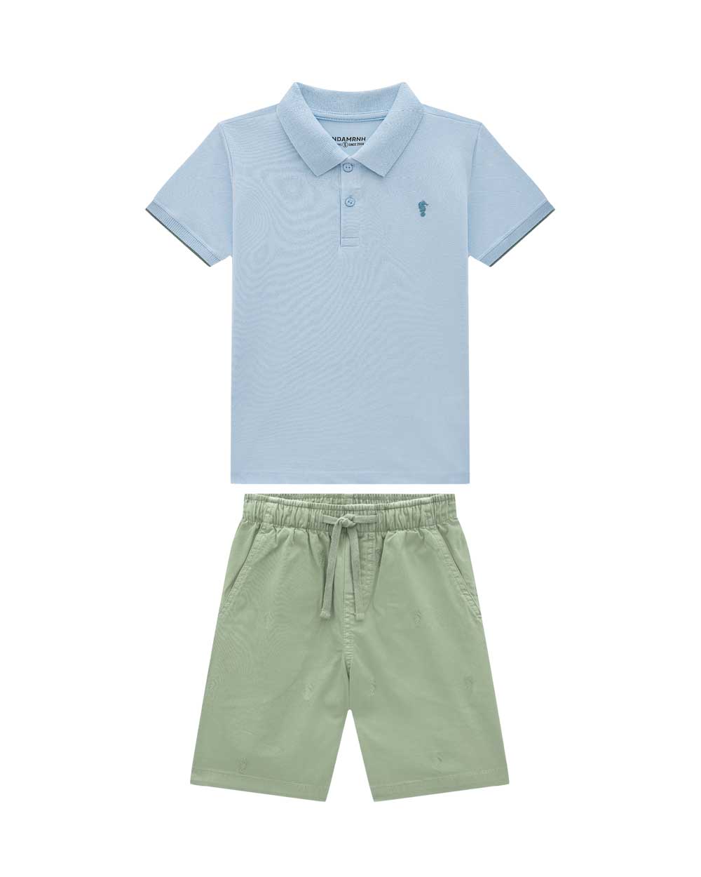 O Conjunto Onda Marinha combina charme e praticidade em um visual clássico e moderno. A camiseta gola polo em piquet oferece um toque refinado e confortável, ideal para dias especiais. A bermuda em sarja com logo bordado garante sofisticação e liberdade de movimento, perfeita para composições de roupa de sair ou conjunto para festas. Produzido com tecidos leves e de alta qualidade, é uma escolha versátil para meninos de bom gosto.