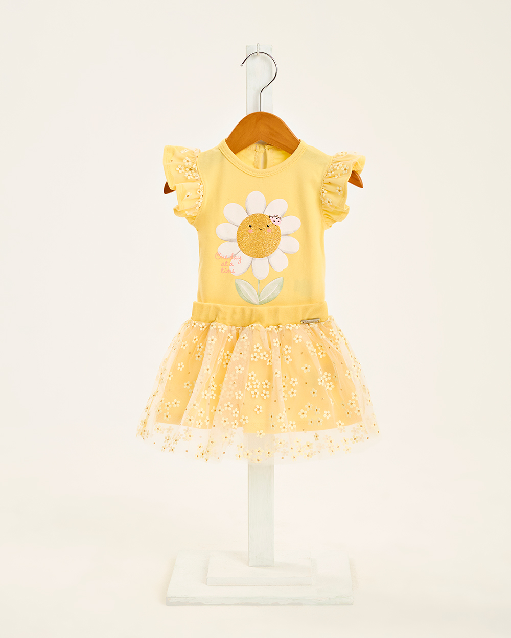 O Conjunto Somnii é a escolha perfeita para vestir delicadeza e encanto nas pequenas de 0 a 3 anos. A blusinha de manga curta, confeccionada em algodão macio, apresenta estampa de margarida e detalhe em tule nas mangas, trazendo um toque romântico e moderno. A saia em tule com aplicação de florzinhas completa o visual com leveza e sofisticação, garantindo um look encantador para passeios, encontros em família ou até como roupa para festa. Um conjunto que une estilo, conforto e praticidade para os primeiros anos da infância.