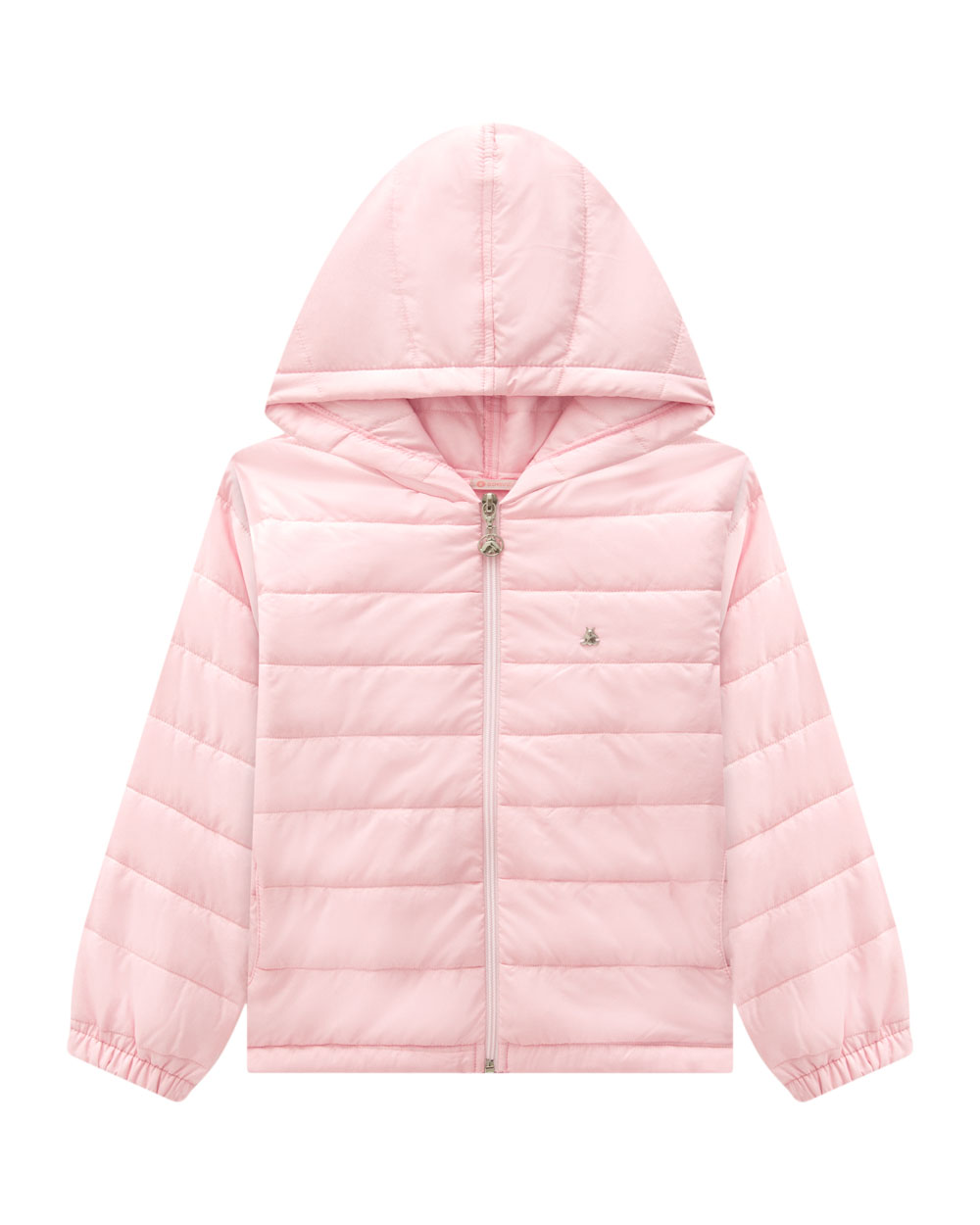 A jaqueta puffer Somnii é perfeita para meninas e meninos de 8 a 10 anos. Confeccionada em nylon resistente, com abertura em zíper e capuz, ela garante conforto, aquecimento e praticidade para os dias mais frios. O logo metalizado adiciona um toque de estilo moderno ao visual.