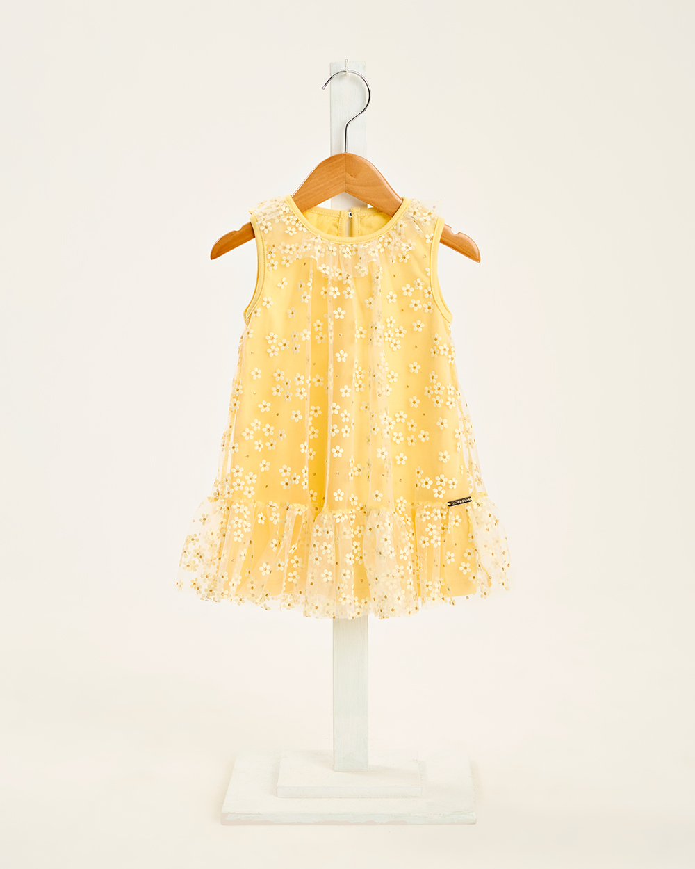 O Vestido Somnii é a escolha perfeita para ocasiões especiais. Com modelagem regata e sobreposição em tule estampado com margaridas com brilho, o visual transmite leveza e elegância. O tecido interno em poliéster garante conforto, enquanto o tule externo em poliamida traz um toque suave e sofisticado. Ideal para roupas para festa ou como um conjunto para festas cheio de charme, esse vestido transforma qualquer momento em pura doçura.